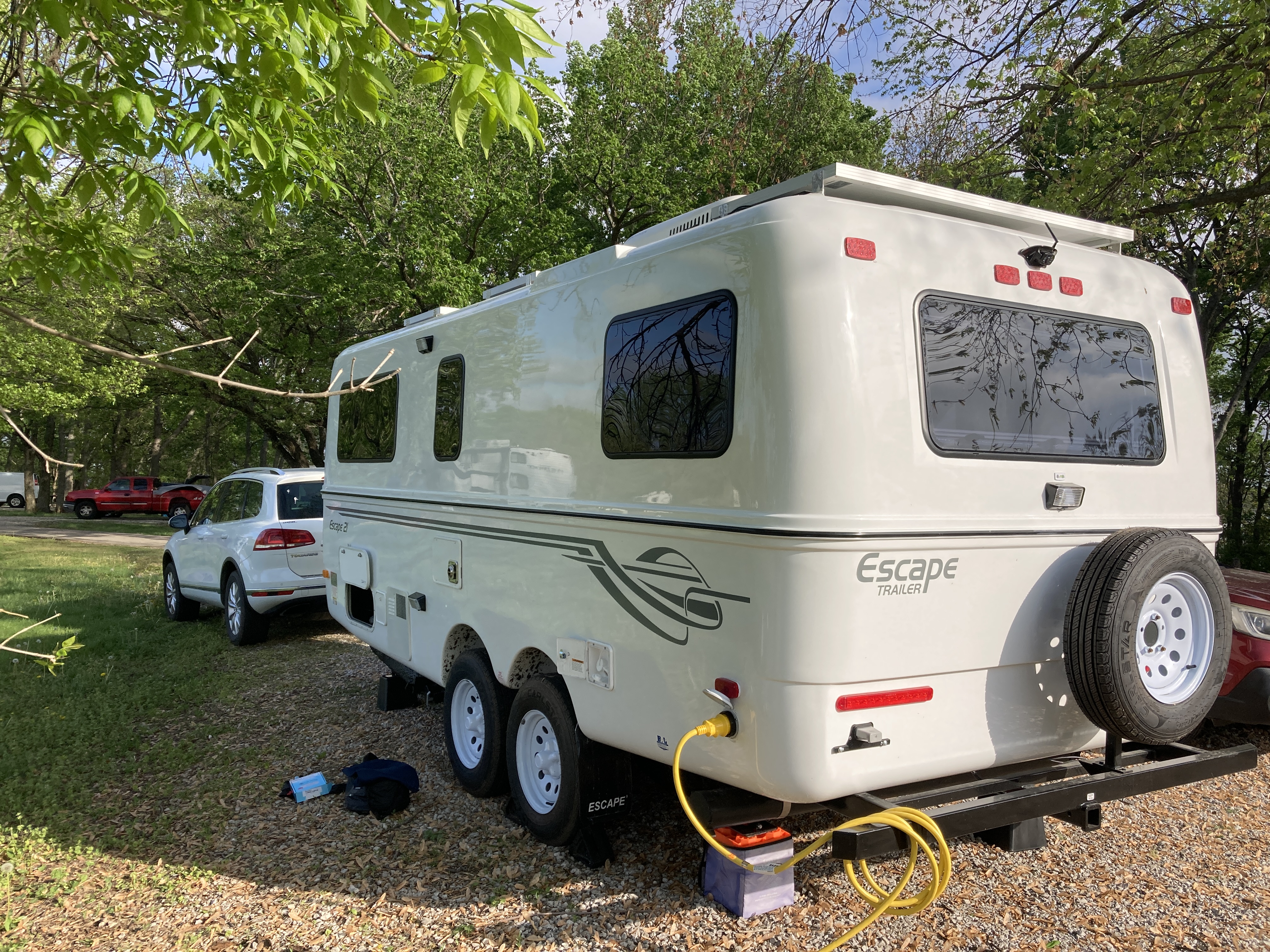 It was a cloudy weekend, cool, rainy at times. We arrived after work Friday evening. We stayed in site 418 which was level (we didn’t need any blocks) and had water and electric at the site. The goal for the weekend was simple, enjoy the camper and learn as much as possible about all the new appliances and systems. Setup was quick, once chocked and unhitched we connected to water and 30amp service and we were done. A much less taxing process than with the pop-up camper we’ve traveled in the last five years.