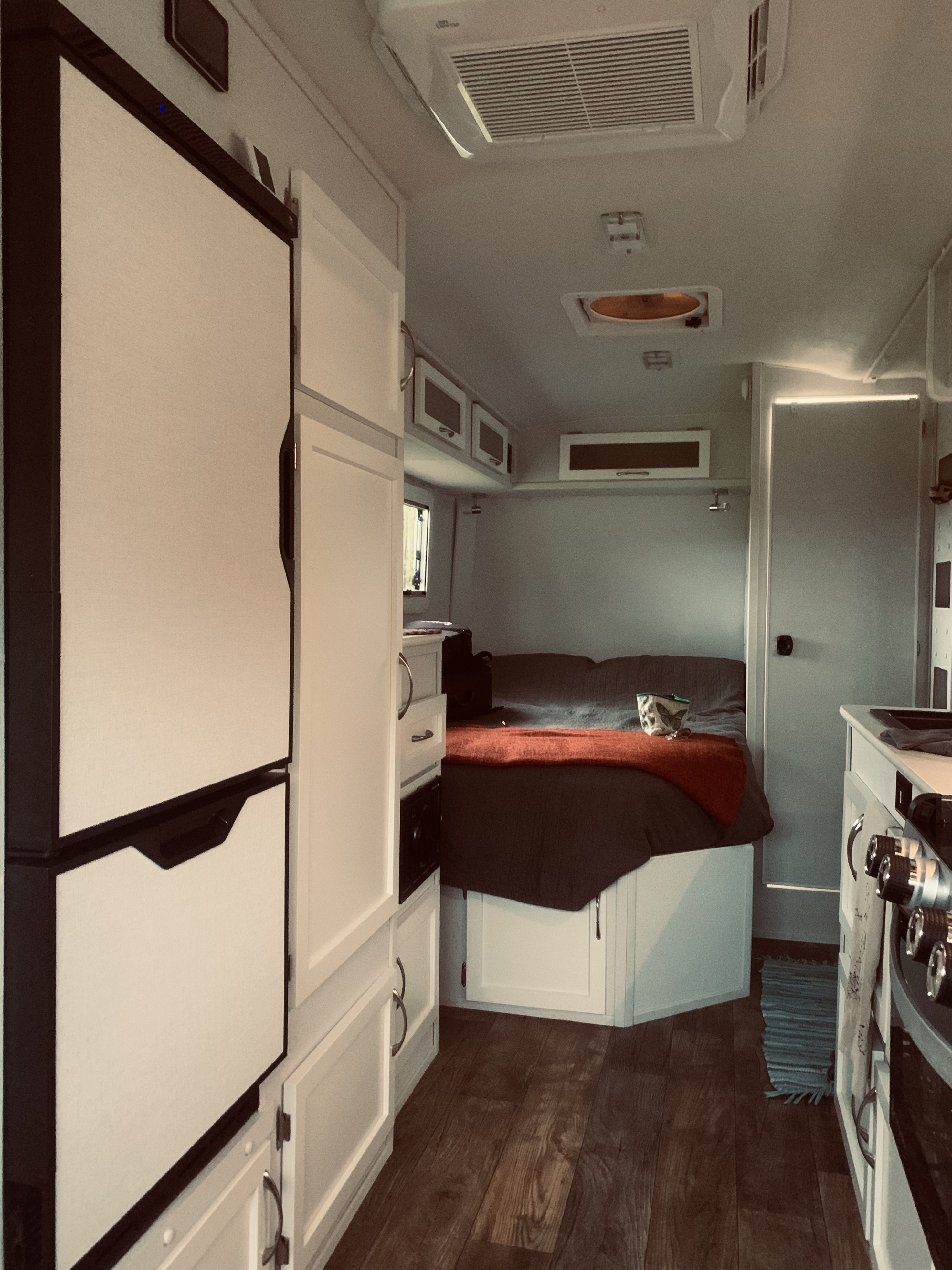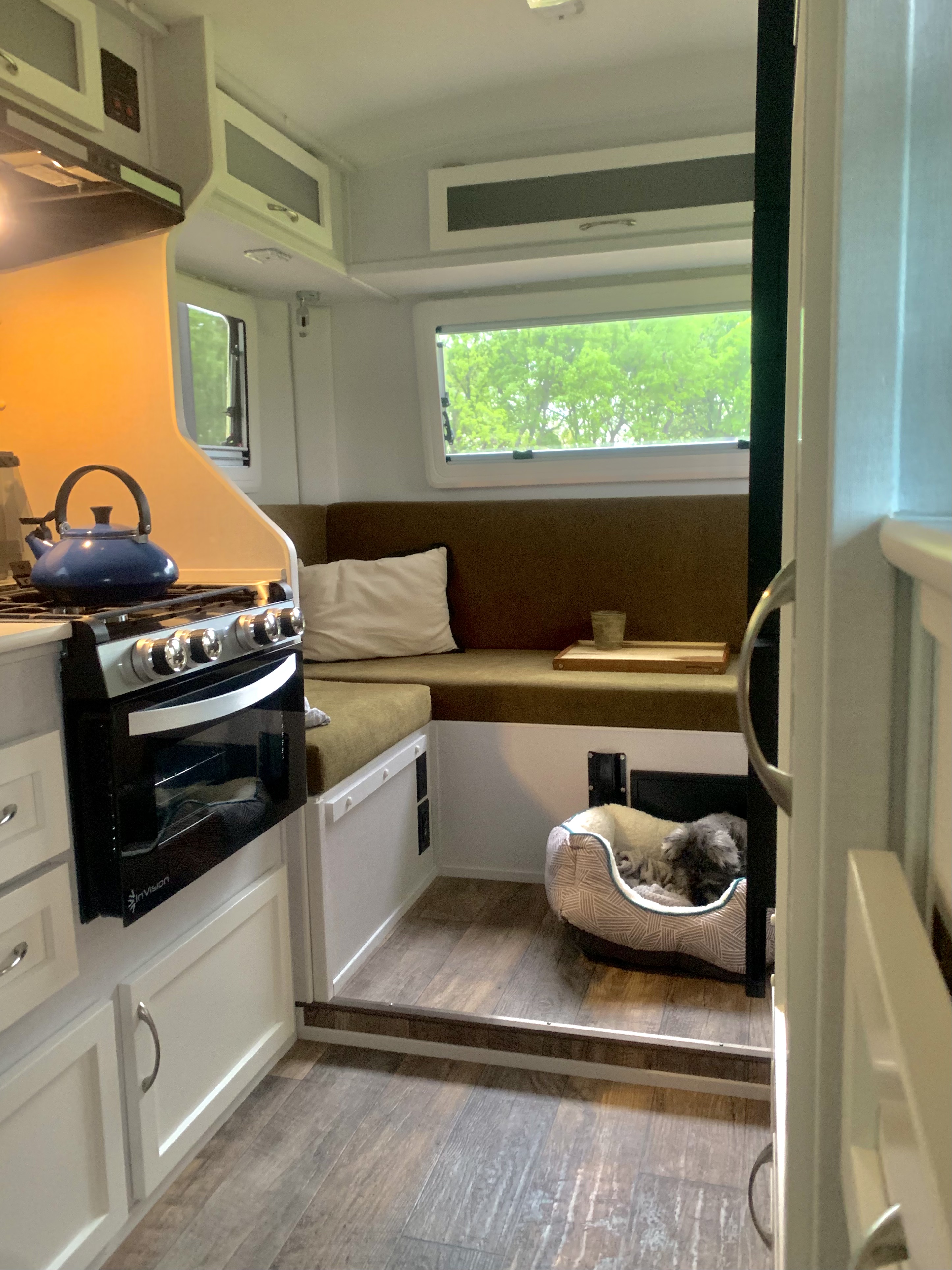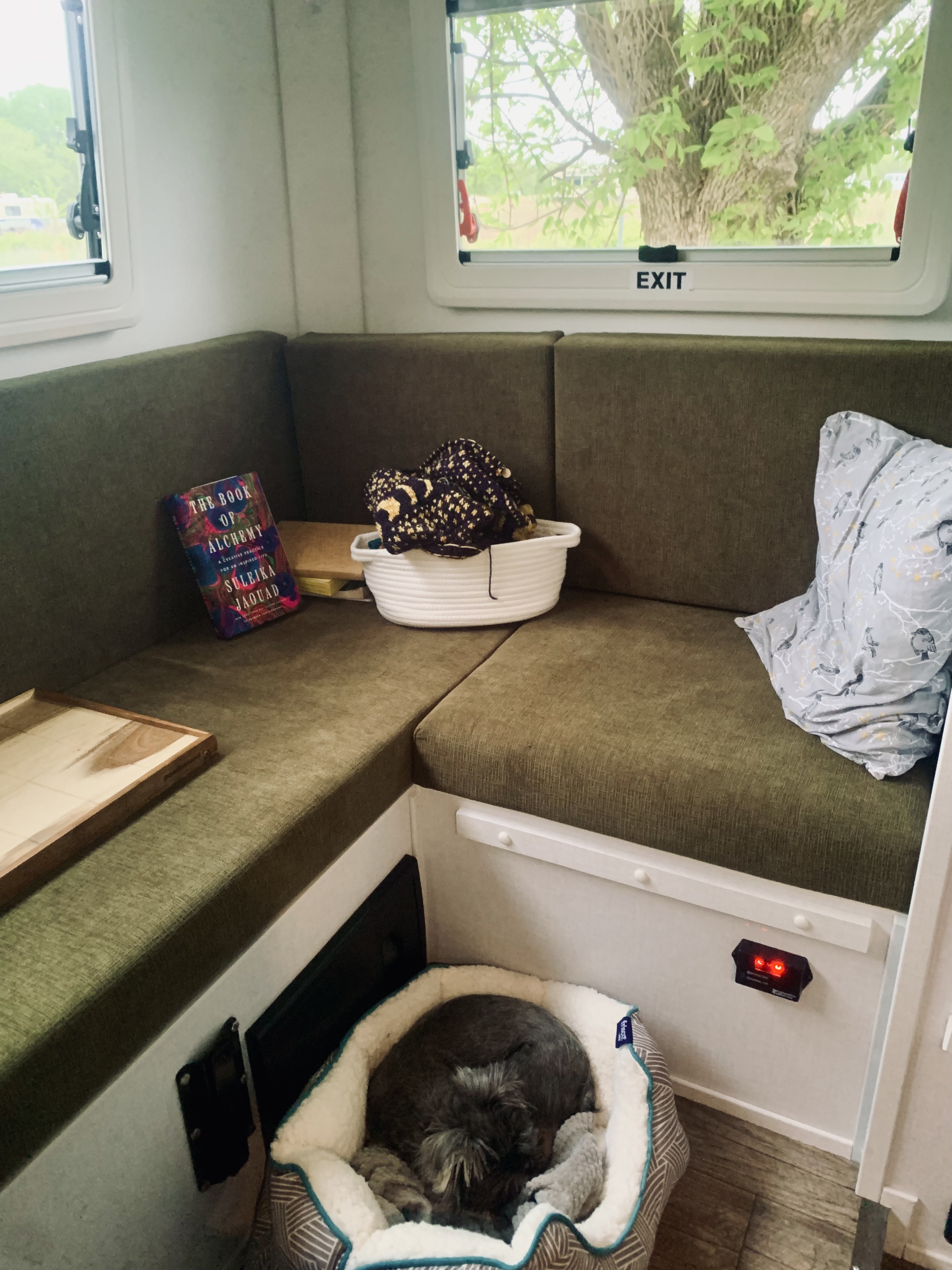 That afternoon we had a lot of fun planning things out, taking measurements and looking for storage solutions. We had snacks and drinks and played around with all the different ways we could sit in the U-shape dinette space. It was said multiple times how happy we were with our new little house on wheels, Pearl.