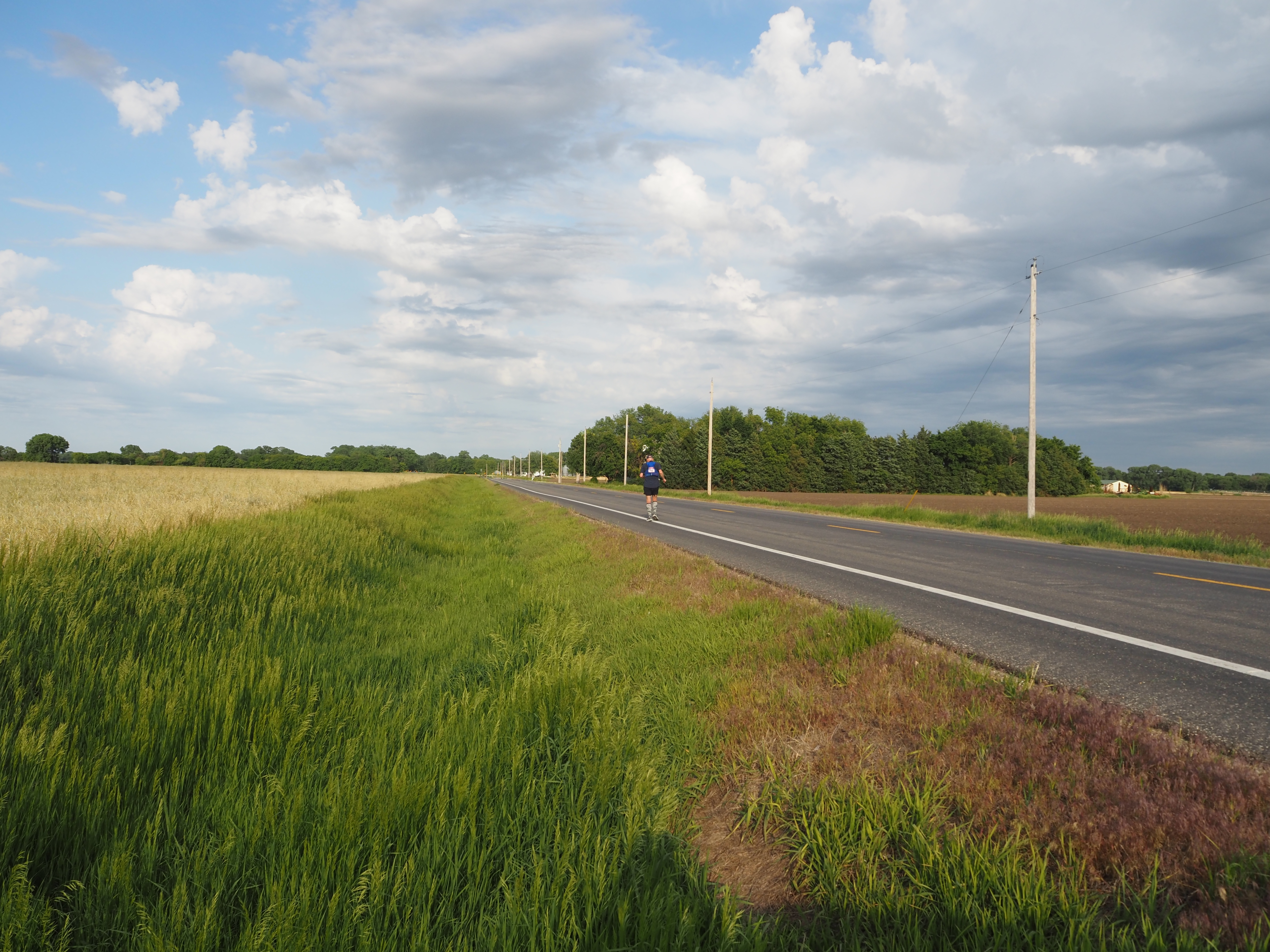 The race had originally been described/planned as being an 11 mile loop on some country backroads but mostly rail trail. About a week before the race however we got an email that the train “committee” had decided we couldn’t use the rail trail and so the course was changed last minute to a 7.7 mile loop. The new course was essentially a square consisting of about 2 miles on a small gravel road and the remaining 5.5 miles on asphalt highway with minimal to no shoulder at times and traffic going 55+ as you returned.