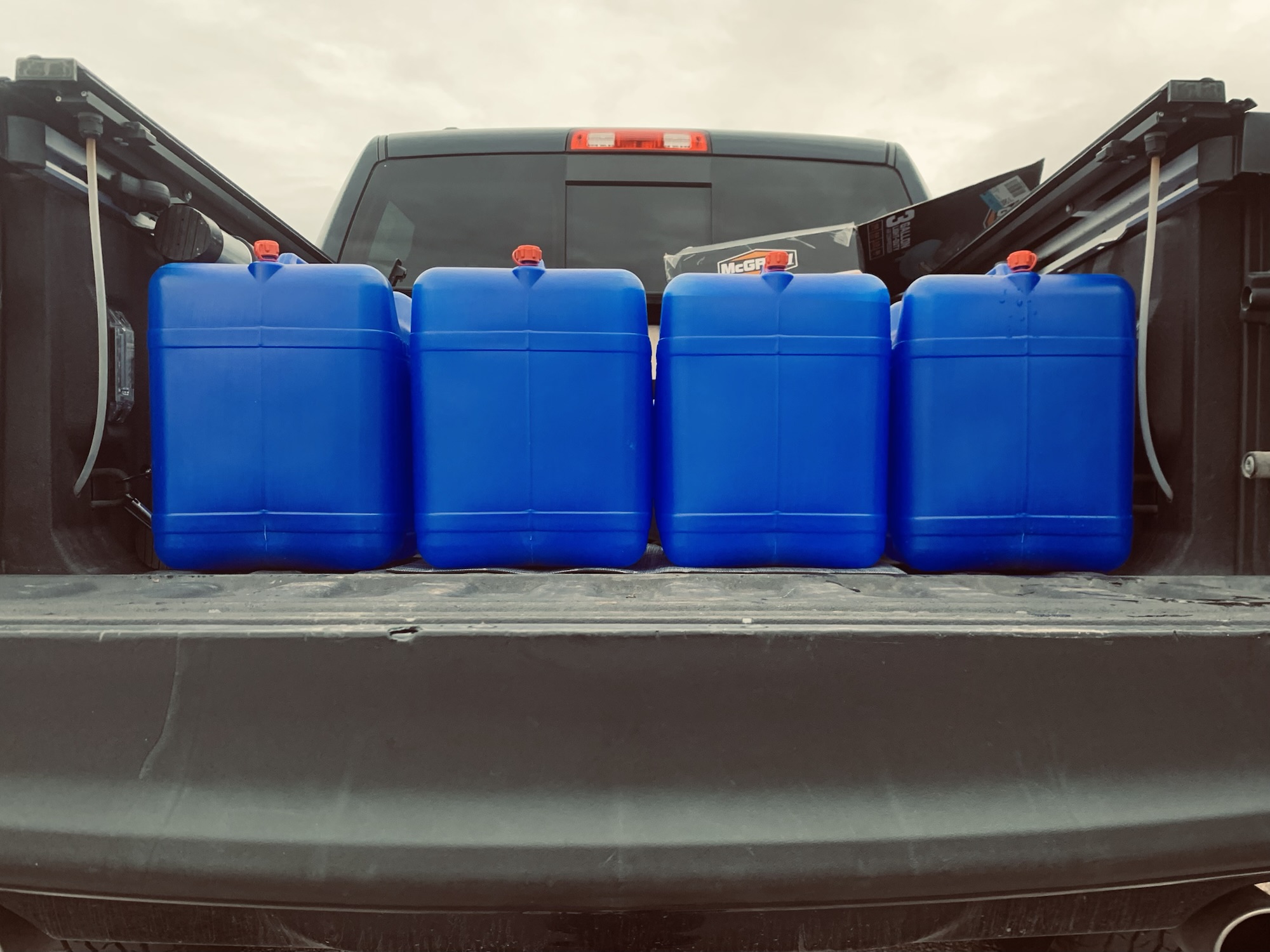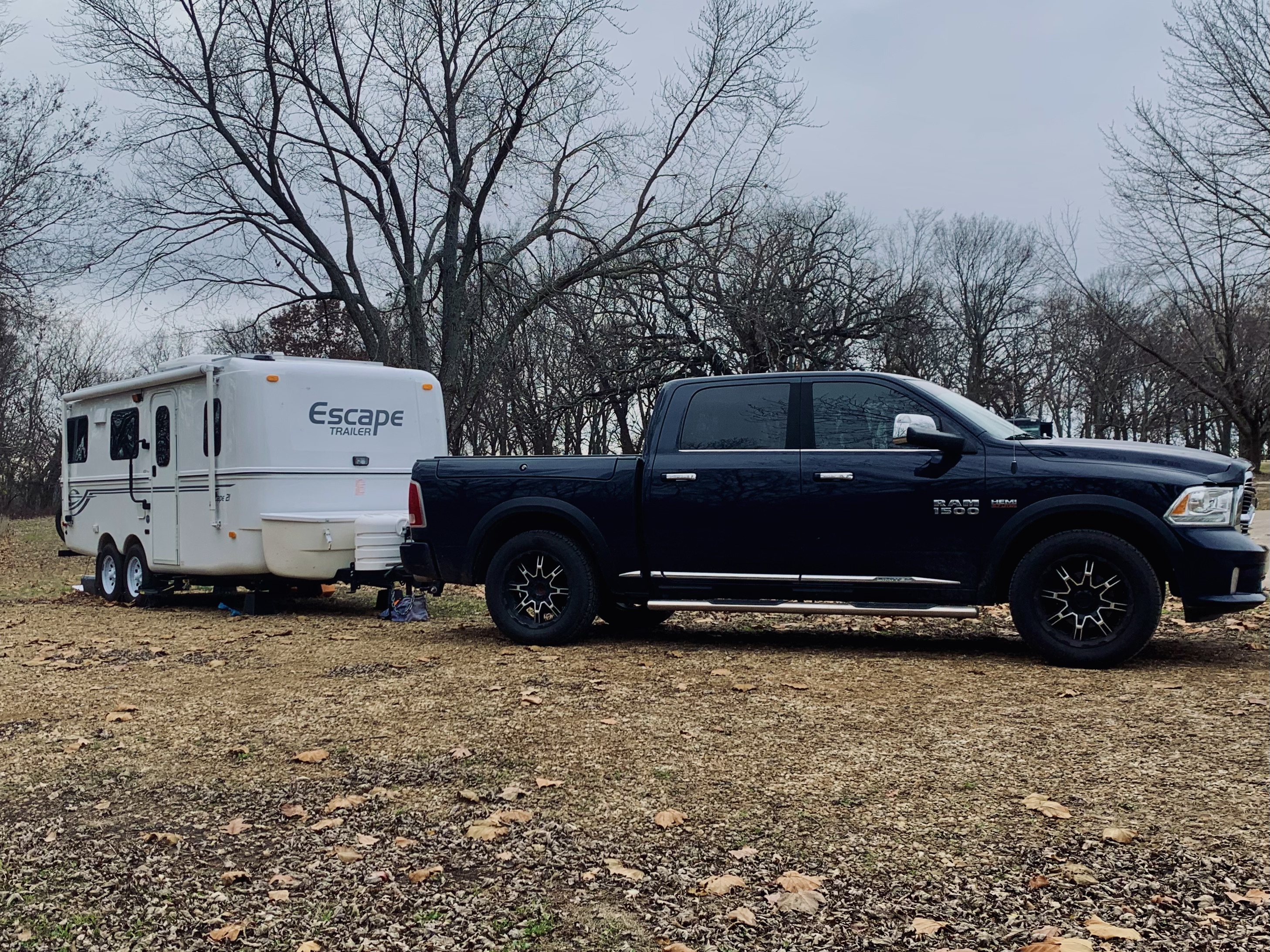 With a long, cold, and windy weekend on the horizon it was a perfect opportunity to enjoy some camping at the lake. Water was shut off for the season so the trip started by filling my Escape 21C’s fresh water tank. It has a capacity of 28 gallons which means my four, 7 gallon water jugs were a perfect top off.